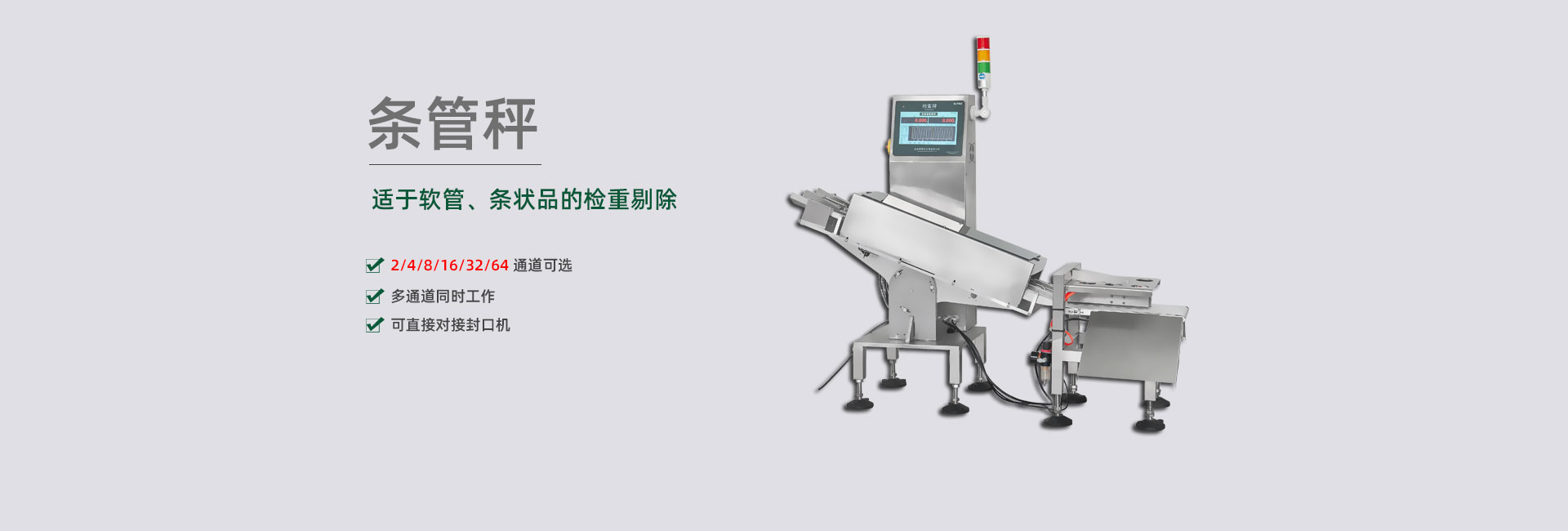 擁有各種剔除方案的專(zhuān)利,包括多列稱(chēng)重結(jié)構(gòu)的剔除裝置,可杜絕不合格品誤通過(guò),準(zhǔn)確剔除各種高速、超薄、片狀、易碎,軟包、空包等物品,包括多列高速產(chǎn)品。